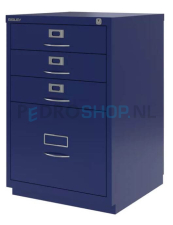 Ladenkast Bisley F-serie voor opbergen hangmappen en andere materialen, 4 laden, donkerblauw