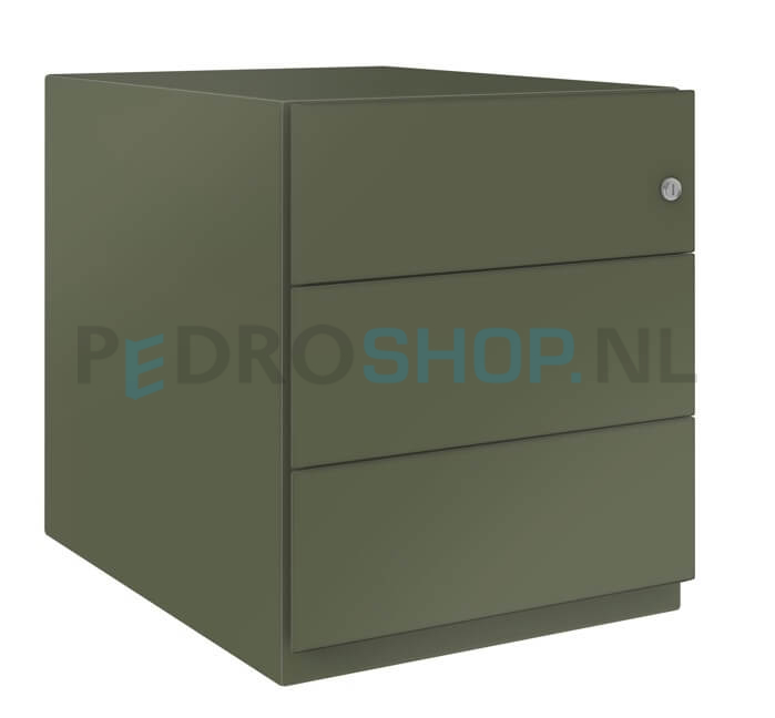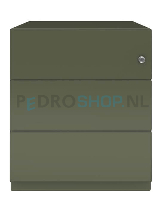 Ladenblok Bisley Basic met 3 laden, 50,2 cm hoog, 42 cm breed, olijfgroen, 80% uittrekbaar