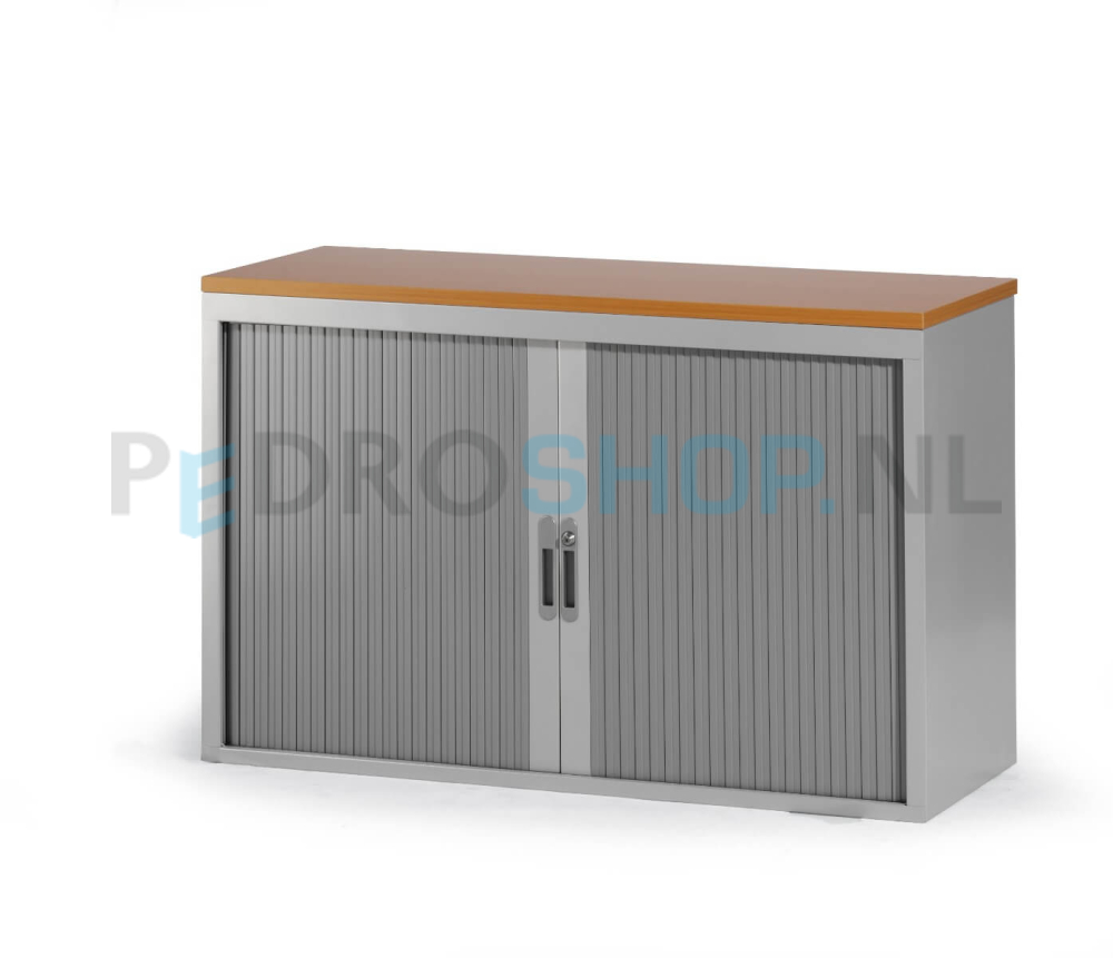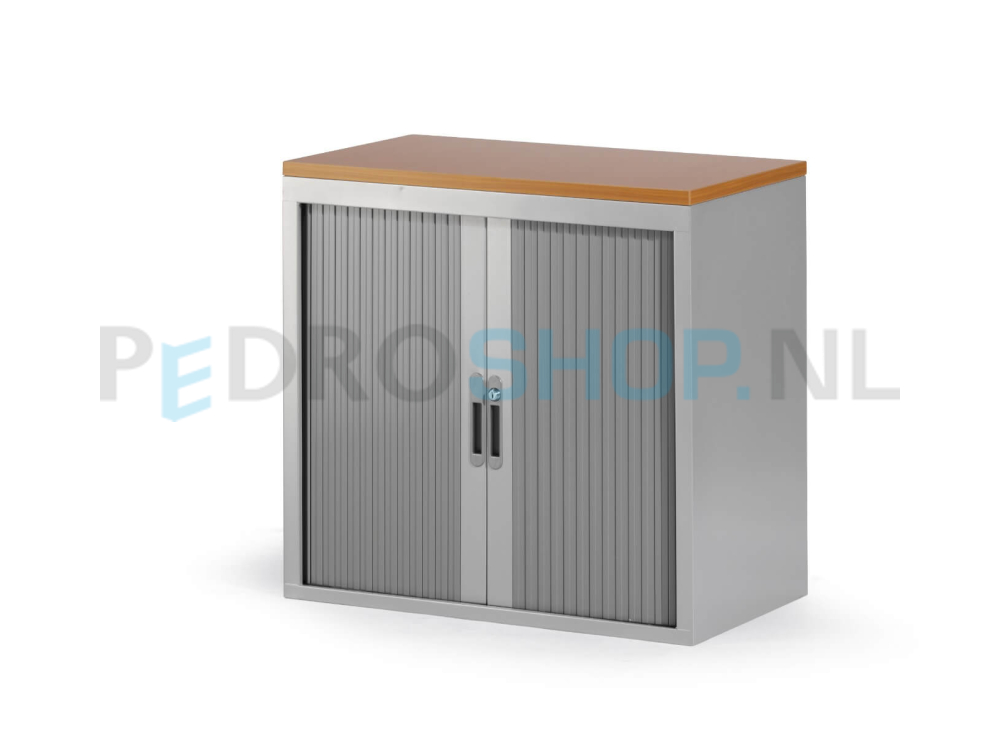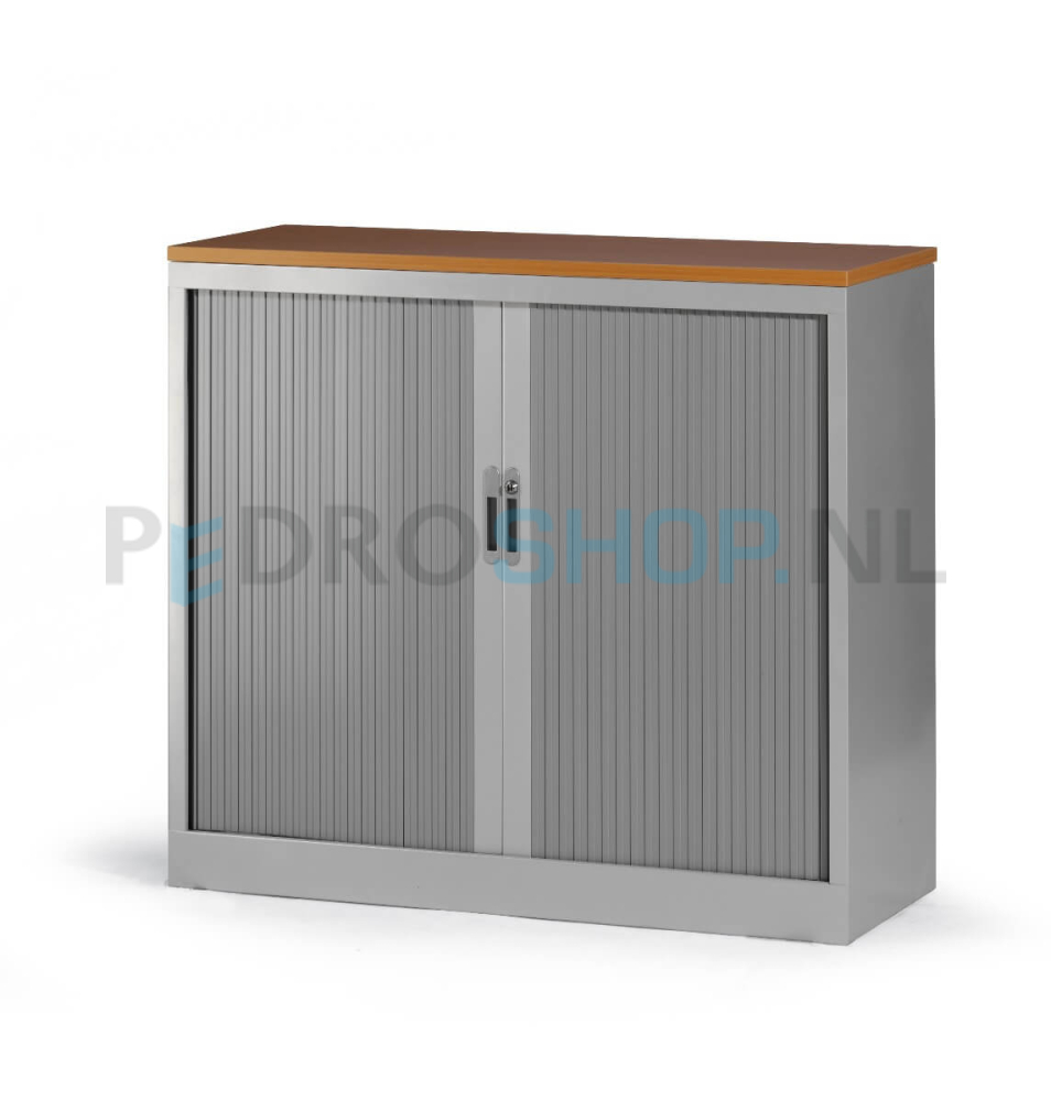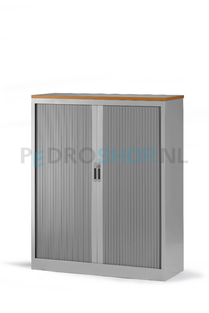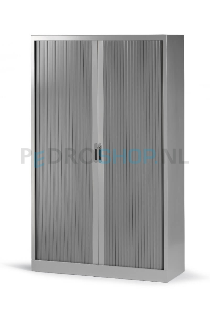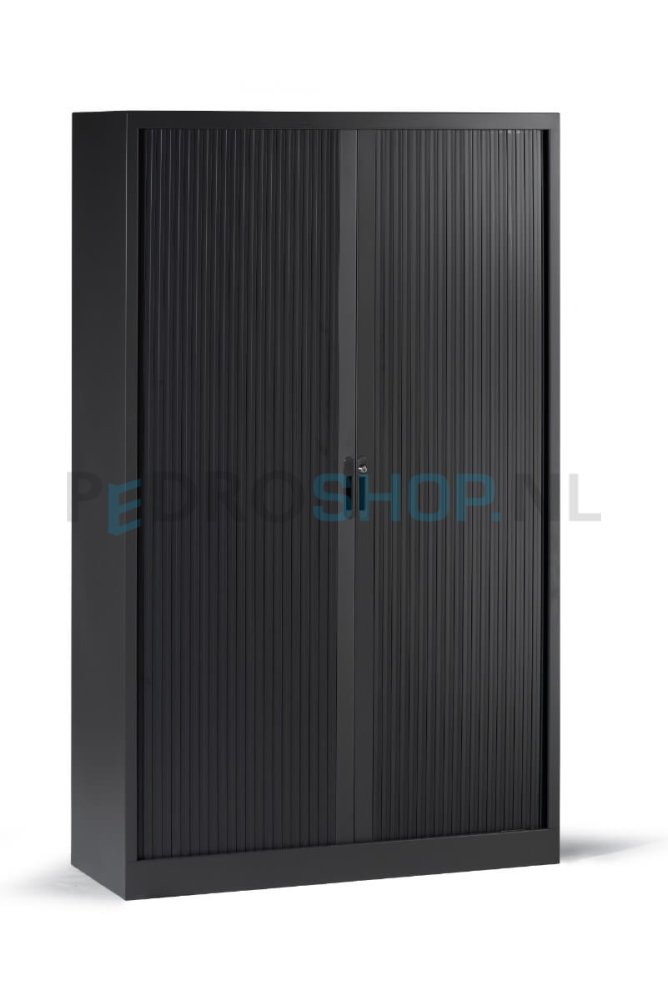 Roldeurkast standaard geleverd met zwarte legborden! De kasten zijn voorzien van 4 van binnenuit verstelbare stelvoetjes. Afsluitbare deuren van brandvertragende kunststof. Per legbord kunt u 13 standaard ordners opbergen (max 35 kg). Legborden standaard geschikt voor laterale hangmappen A4, met een spoorbreedte van 33.5 cm. Tevens mogelijkheid voor laterale hangmappen in het plafond.