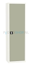 Deze draaideurkast is geheel na eigen wens samen te stellen. De draaideurkast kent voor de deuren de kleurcode: Kiezelgrijs ral 7032 en voor de ombouw: Wit ral 9010.