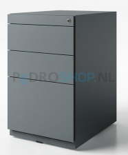 De Bisley ladenblokken zijn leverbaar in veel verschillende kleuren! Zo is er altijd wel een kleur beschikbaar welke past op uw kantoor. Dit ladenblok kent de kleur antraciet. Deze kleur kent de RAL kleur RAL7016. De coating is een structuur coating. Let op: de kleur zilvergrijs is een gladlak coating.