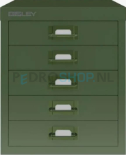 Meerladenkast Bisley-5, A4 formaat, 5 laden, handgreep gekleurd, olijfgroen
