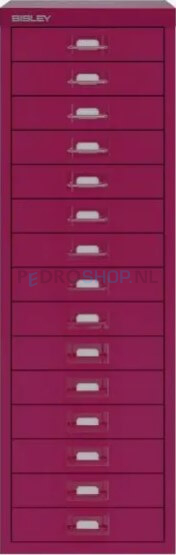 Meerladenkast Bisley -15, A4 formaat, 15 laden, handgreep gekleurd, bosbes