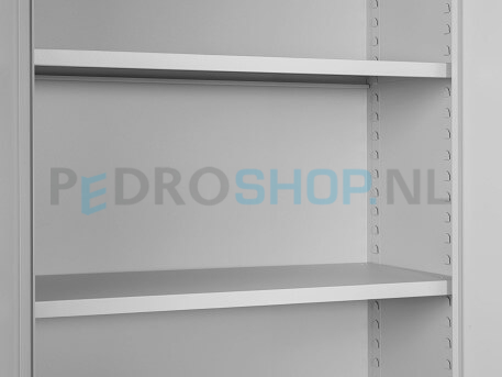 Bijgeleverd bij de PDC-180 en PDC-195 draaideurkasten worden 4 legborden. De legborden zijn geschikt voor opbergen van laterale hangmappen met een spoorbreedte van 33 cm. Maakt u gebruik van ordners? Dan kunnen er in de PDC-180 en PDC-195 5 ordnerrijen hoog worden opgeborgen. De legborden kunnen op gewenste hoogte in de kast worden geplaatst. Om de 3,5 cm kent de kast de mogelijkheid om legborden te plaatsen. De legborden kunnen een maximaal verdeeld gewicht dragen van 50 kg.